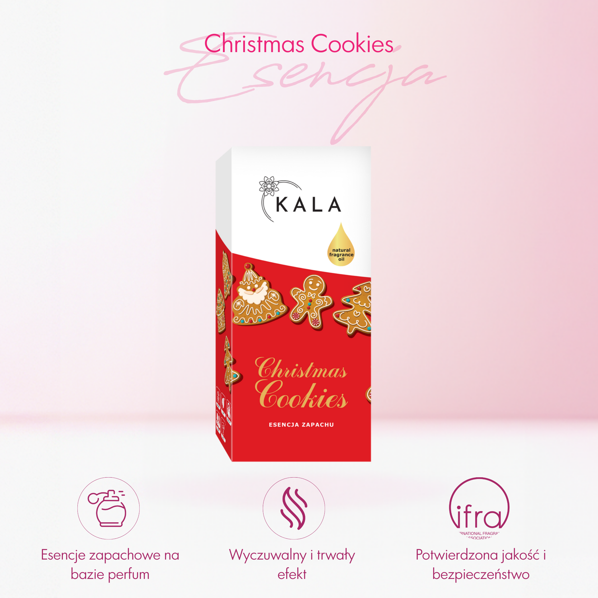 Christmas Cookies to limitowana, świąteczna edycja specjalna, zapach który ogrzewa serca i przenosi prosto do kuchni pełnej aromatów pieczenia. Zapach świeżo upieczonego piernika, otulony aromatycznym cynamonem, łączy się z nutą palonego cukru, tworząc niepowtarzalną kompozycję. Delikatna skórka pomarańczy dodaje świeżości i cytrusowej elegancji, balansując słodkie nuty. To kompozycja, która budzi wspomnienia najpiękniejszych chwil przy świątecznym stole i wypełnia wnętrza atmosferą bliskości, radości i rodzinnego ciepła.