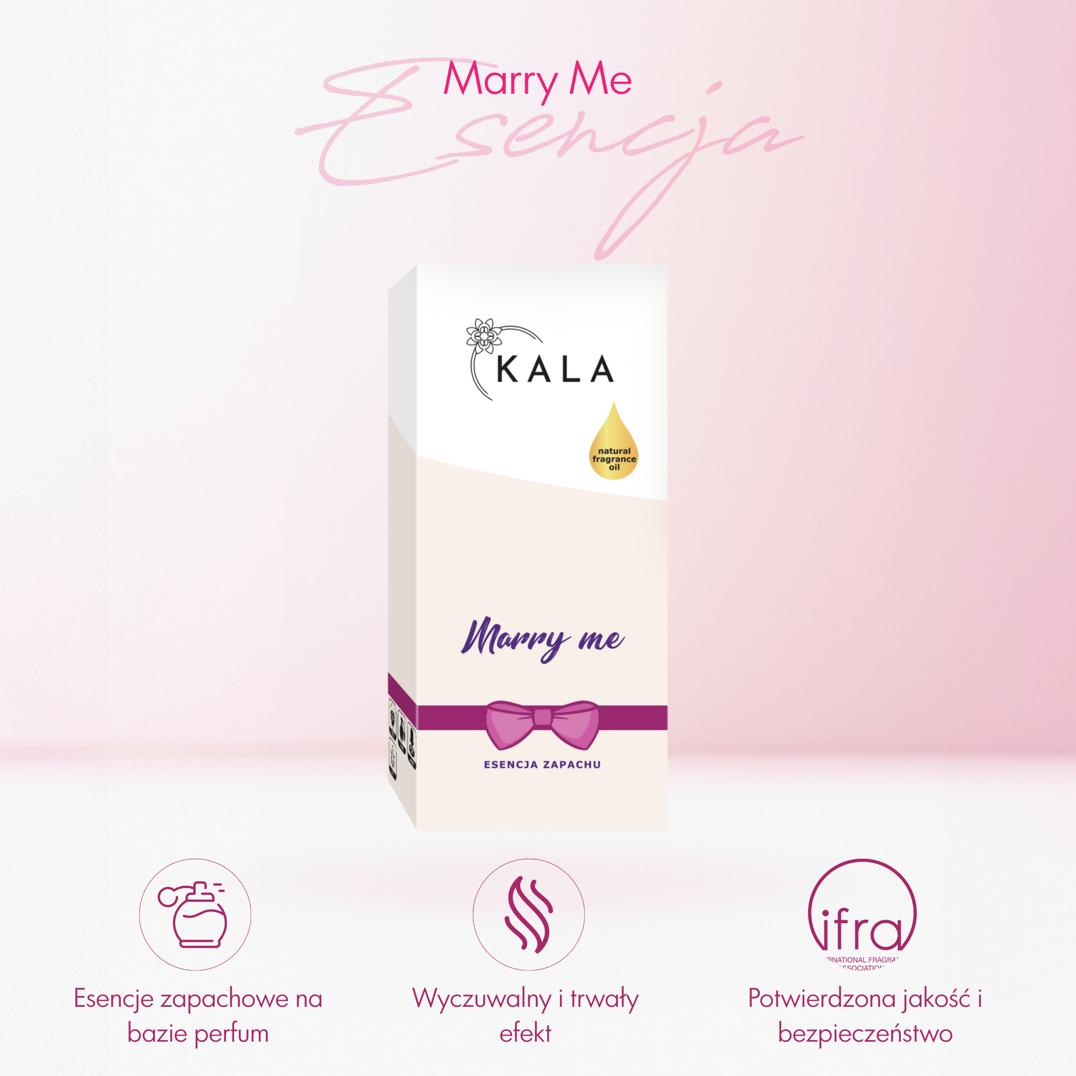 Marry Me to idealna esencja zapachowa dla miejsc, które chcą emanować ciepłem, radością i kobiecym urokiem. W hotelowych lobby i recepcjach stworzy przyjazną, romantyczną atmosferę, która zapada w pamięć. W salonach sukien ślubnych, gabinetach beauty i spa wprowadzi harmonię, relaks i poczucie komfortu. W domowych wnętrzach otuli przestrzeń miękkim, kwiatowym aromatem – idealnym na wyjątkowe okazje.