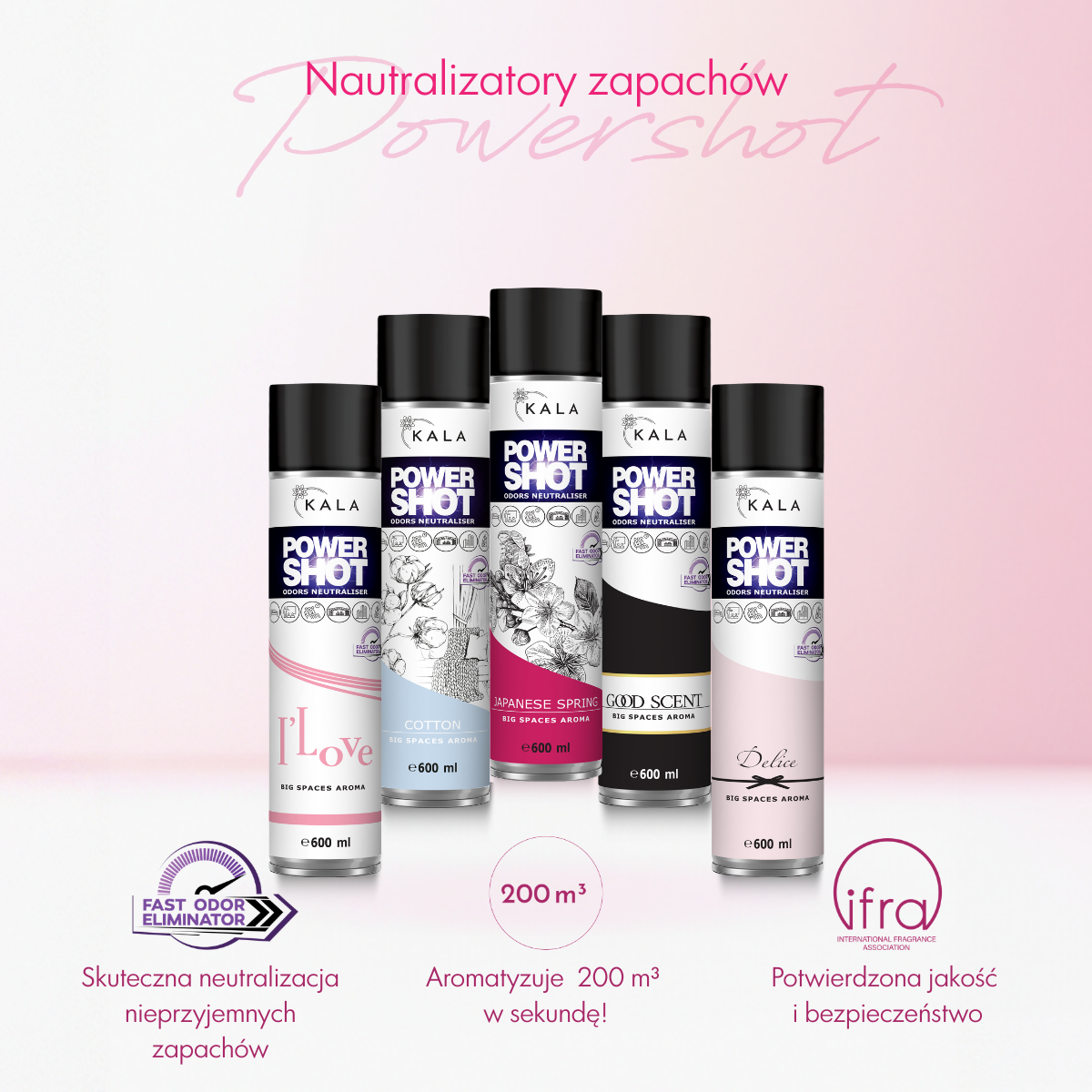 POWER SHOT to neutralizator zapachu dedykowany do odświeżania dużych powierzchni.