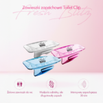 ZAWIESZKI DO TOALETY FRESH BLITZ TOILET CLIP – TO DYSKRETNE, ŻELOWE ROZWIĄZANIE, KTÓRE ZAPEWNIA ŚWIEŻOŚĆ W TOALETACH PUBLICZNYCH NAWET DO 30 DNI.