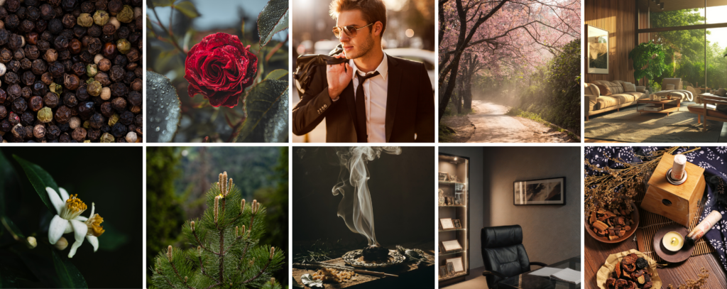 Subtelne nuty kwiatów japońskiej wiśni i róży spotykają się z mistycznym kadzidłem, tworząc aromat pełen elegancji i spokoju. W sercu zapachu rozkwita róża, konwalia i neroli, które wnoszą lekko orientalny, zmysłowy ton. Bazę stanowią cedr, piżmo i wetyweria – nuty nadające przestrzeni głębi, klasy i ponadczasowego charakteru.
